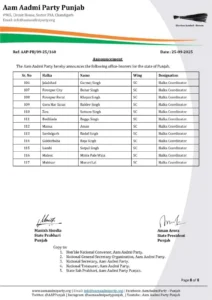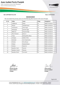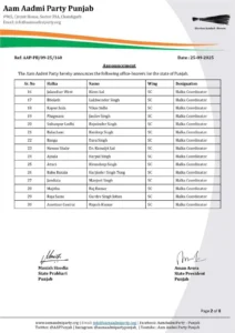 IndiaPunjabiਪੰਜਾਬ ਆਮ ਆਦਮੀ ਪਾਰਟੀ ਵੱਲੋਂ ਪੰਜਾਬ ਦੇ ਸਾਰੇ ਹਲਕਿਆਂ ‘ਚ SC ਵਿੰਗ ਦੇ ਅਹੁਦੇਦਾਰਾਂ ਦਾ ਐਲਾਨ, ਦੇਖੋ ਸੂਚੀ By Sell Aid News - September 26, 2025 29 FacebookWhatsAppTelegramTwitterPinterestCopy URL Sell-Aid Desk24/7- ਆਮ ਆਦਮੀ ਪਾਰਟੀ ਪੰਜਾਬ ਦੇ ਸਾਰੇ ਹਲਕਿਆਂ ‘ਚ SC ਵਿੰਗ ਦੇ ਅਹੁਦੇਦਾਰਾਂ ਦਾ ਐਲਾਨ ਕਰਦੀ ਹੈ। ਸਾਰੇ ਅਹੁਦੇਦਾਰਾਂ ਨੂੰ ਨਵੀਆਂ ਜ਼ਿੰਮੇਵਾਰੀਆਂ ਲਈ ਢੇਰ ਸਾਰੀਆਂ ਸ਼ੁਭਕਾਮਨਾਵਾਂ। ਸਾਰੇ ਅਹੁਦੇਦਾਰਾਂ ਨੂੰ ਨਵੀਆਂ ਜ਼ਿੰਮੇਵਾਰੀਆਂ ਲਈ ਢੇਰ ਸਾਰੀਆਂ ਸ਼ੁਭਕਾਮਨਾਵਾਂ।
