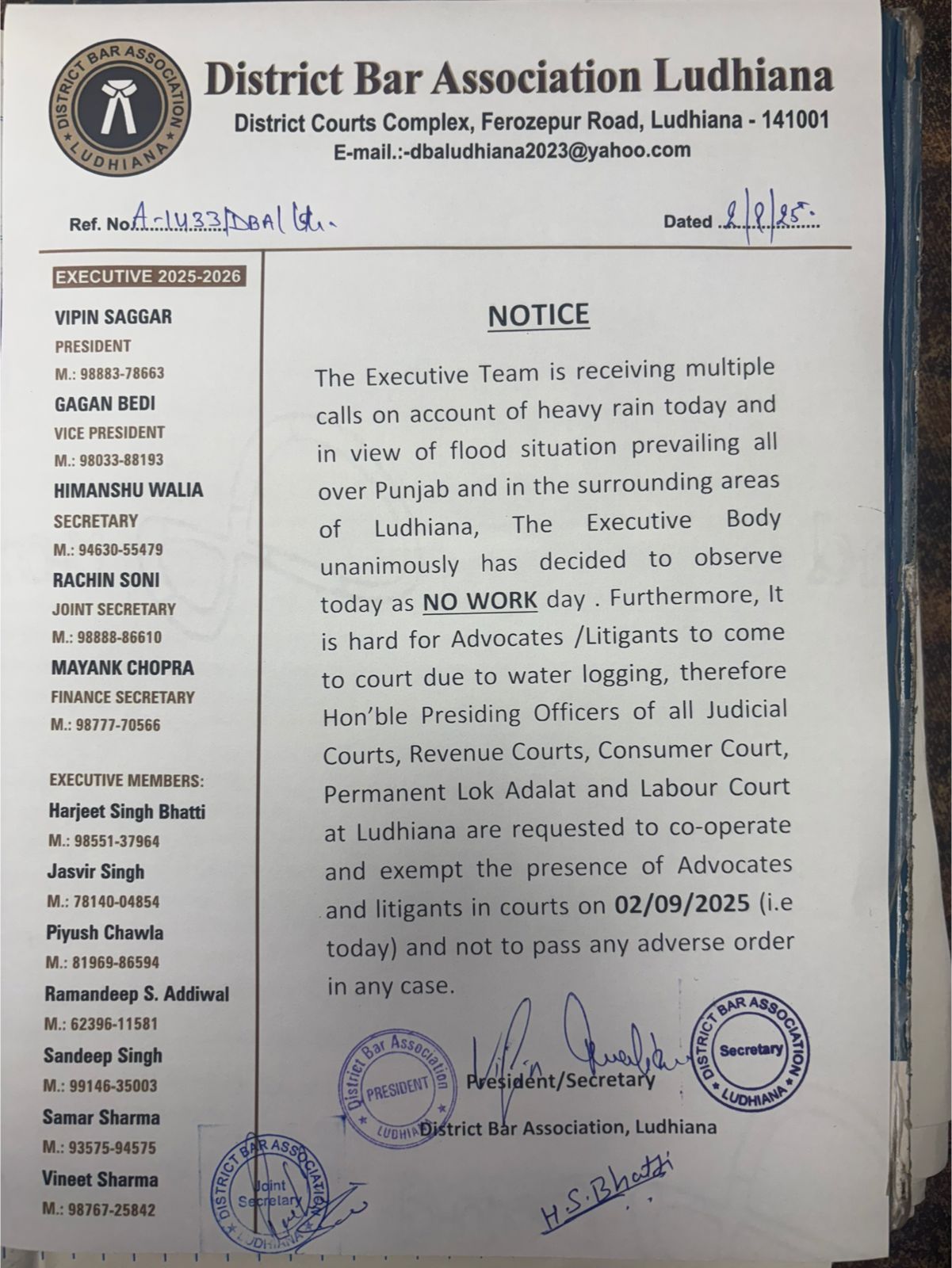 Sell-aid Desk: Team Executive, District Bar Association Ludhiana has came up with an initiative today for the welfare of flood effected families. Therefore it is handfolde request to all, to come forward and contribute as much as possible as per their convenience. Every small contribution will help the Punjab and our Punjabi fraternity ๐๐